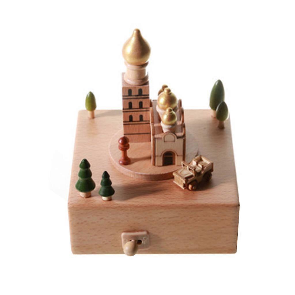 European Castle Church Building Wooden Music Box Table Home Decoration for Creative Birthday Valentine's Day Gift Orname Multicolor
