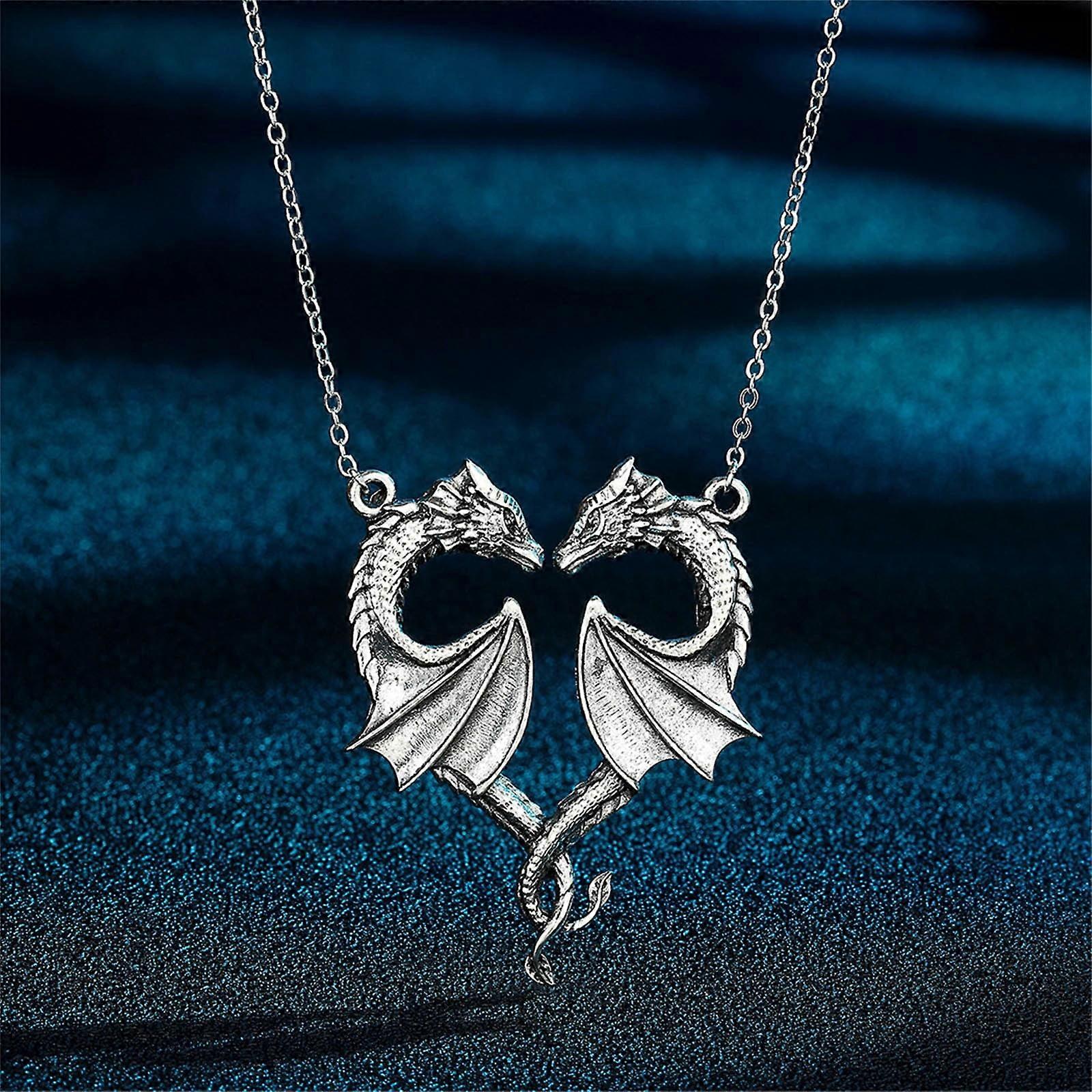 Valentines Day Gifts Savings Deals! WJSXC 2022 Fashion Dinosaur Heart-Shaped Necklace for Women Gril Wonderful Gift Silver