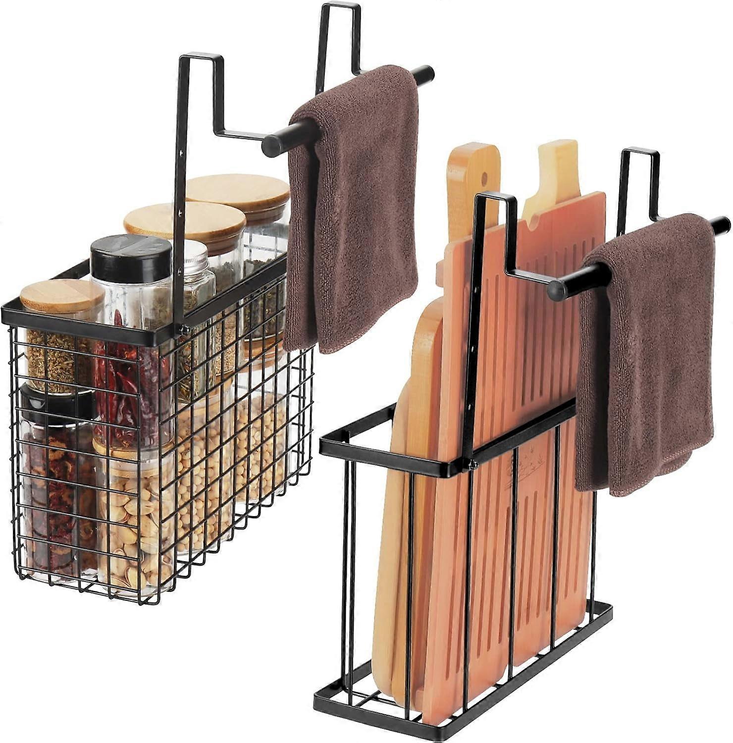 2 Pack Cabinet Door Organizer, Hang Over Door with Towel Bars, Compatible with Cutting Boards, Baking Sheets, Foil, Plastic Wrap