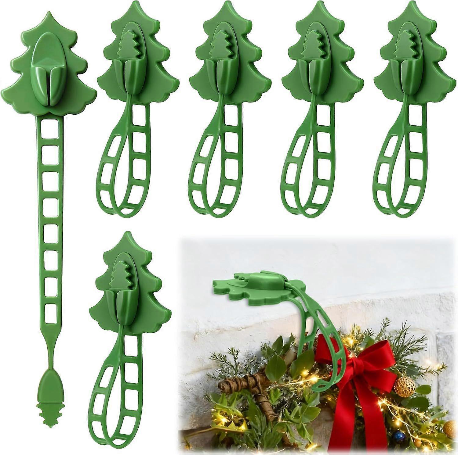 Christmas Garland Hanging Hooks for Mantle, 5Pcs Fireplace Garland Hanger, Christmas Tree Shaped Ties Stocking Holder Reusable Silicone Adhesive Strap