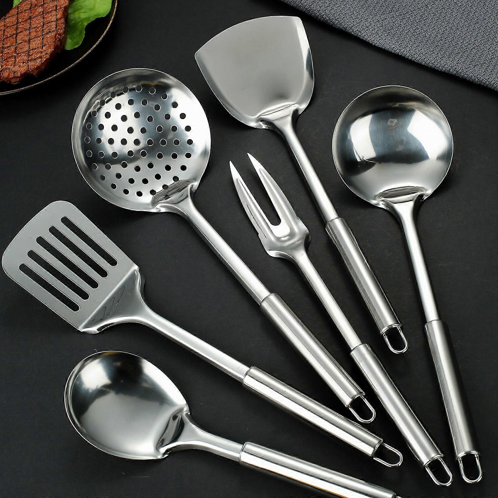 Tableware 6 Stainless Steel Kitchen Cooking Utensil Set Serving Tools Server Spatula Spoon (White)
