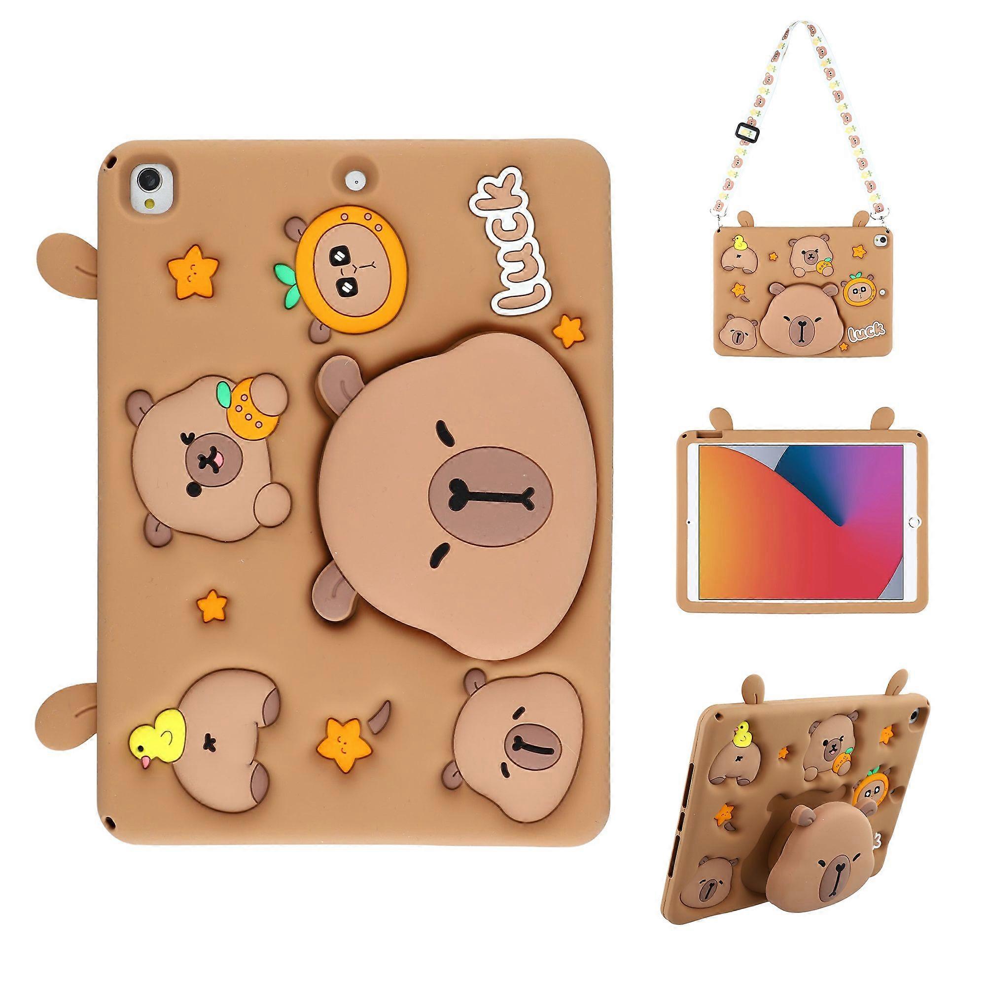 Cute Silicone Case for iPad 10.2 (2021/2020/2019)/ iPad Air 10.5 inch (2019)/ Pro 10.5-inch (2017) Tablet Cover with Retractable Bear Kickstand/ Shoul