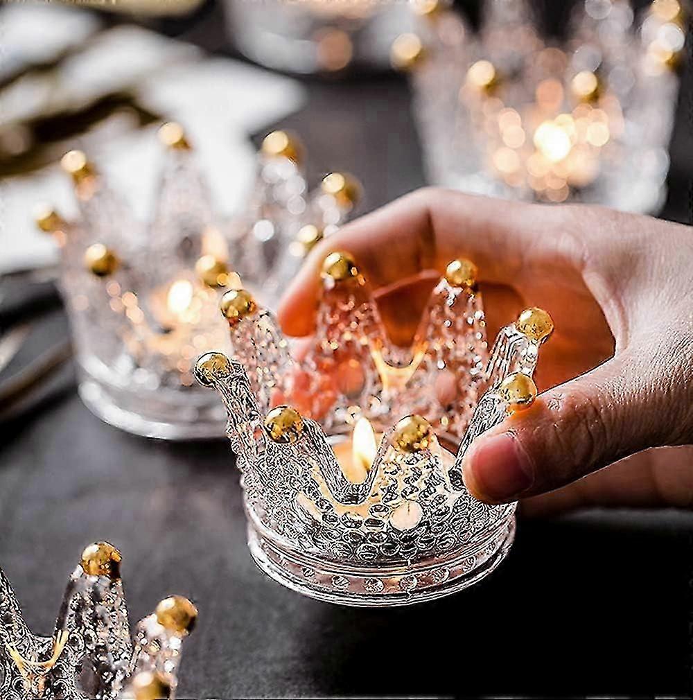 Set of 6 Elegant Crown Glass Tealight Holders for UK Weddings, Parties, and Cosy Home Decorations