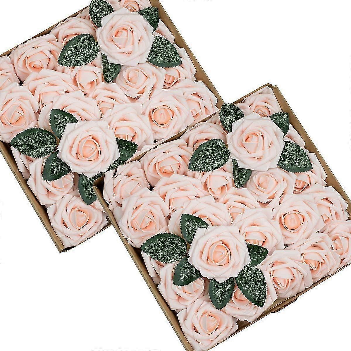 50pcs Real-Looking Artificial Foam Roses with Stems and Leaves for UK Home Decor