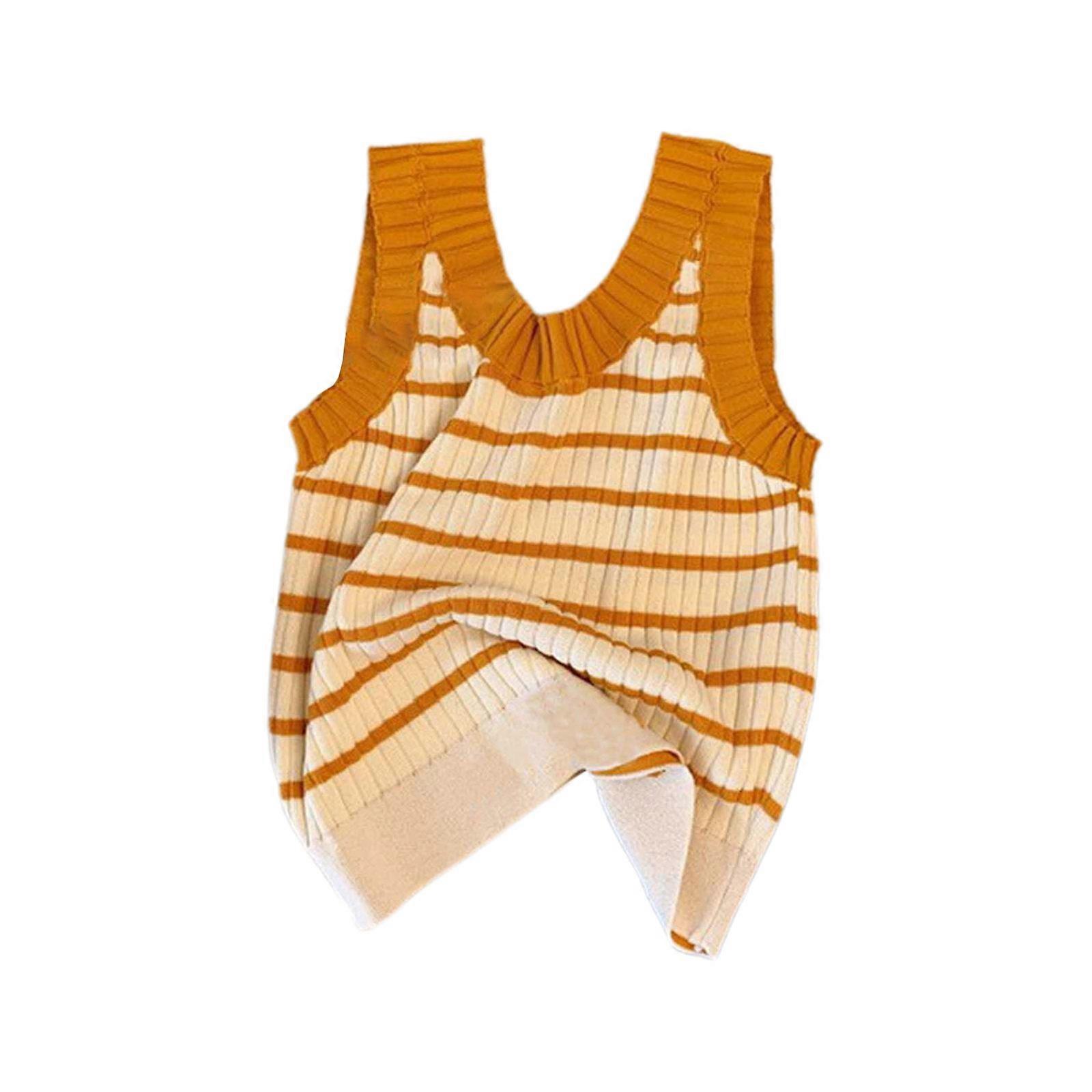 Women Crochets Shirt Contrasting Color Sleeveless Knit Women Summer Crewneck Cute Stripes Vest Vintage Daily Top Cloth One Size Yellow