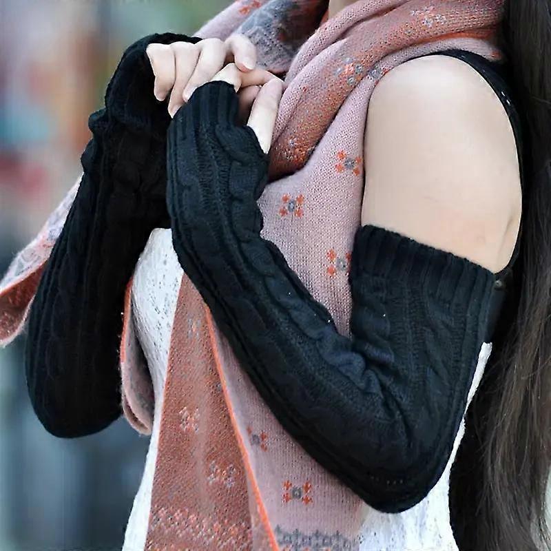 Women's Winter Warm Gloves, Elastic Knit Design, Long Pure Color, Windproof Outdoor Activities, Washable Fashion Accessory