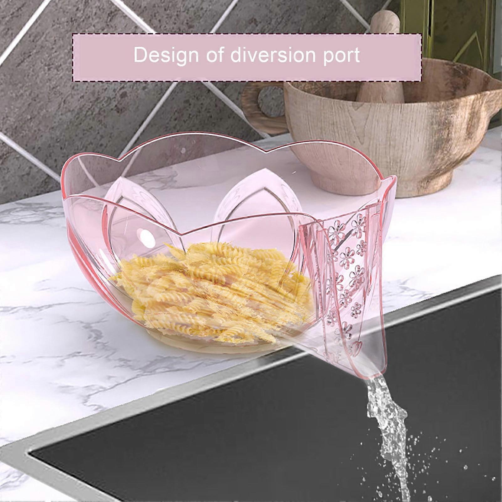 SUSUchens 2-in-1 Fruit & Vegetable Washing Bowl with Strainer, Filter Holes, and Drain Container - Pink Kitchen Sink Drainer Basket