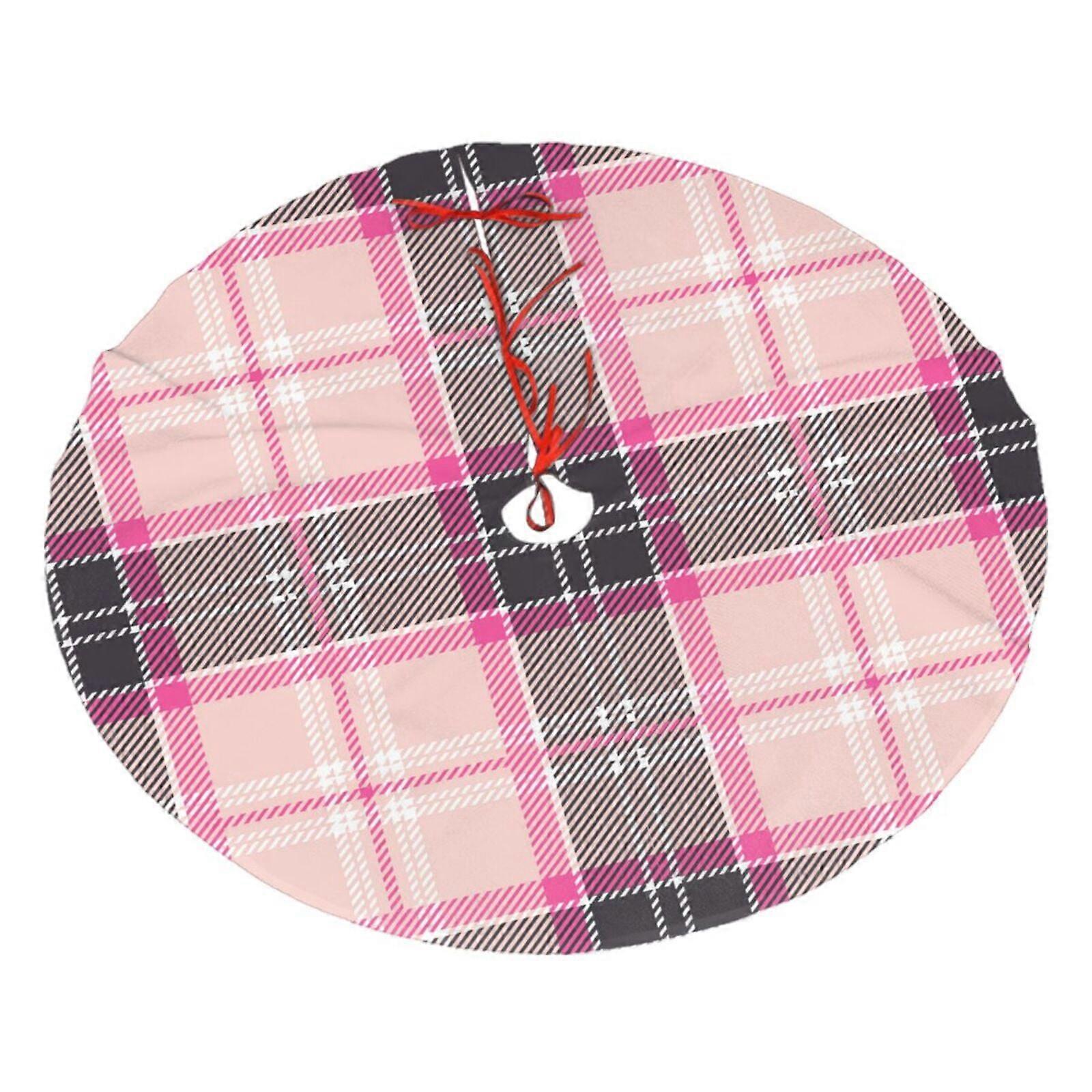 Pink Tartan Plaid Design Christmas Tree Skirt, Soft And Funny Merry Christmas Tree Collar Farmhouse Xmas Holiday Decoration 36"