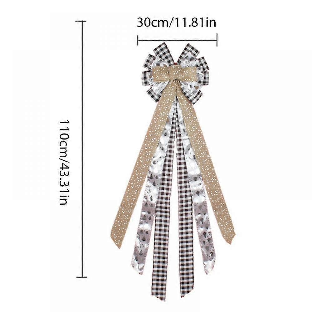 Christmas Tree Top Hat Bow, Buffalo Plaid Ribbon Christmas Decoration Bow For Christmas Tree, Front Door Garland And Wall