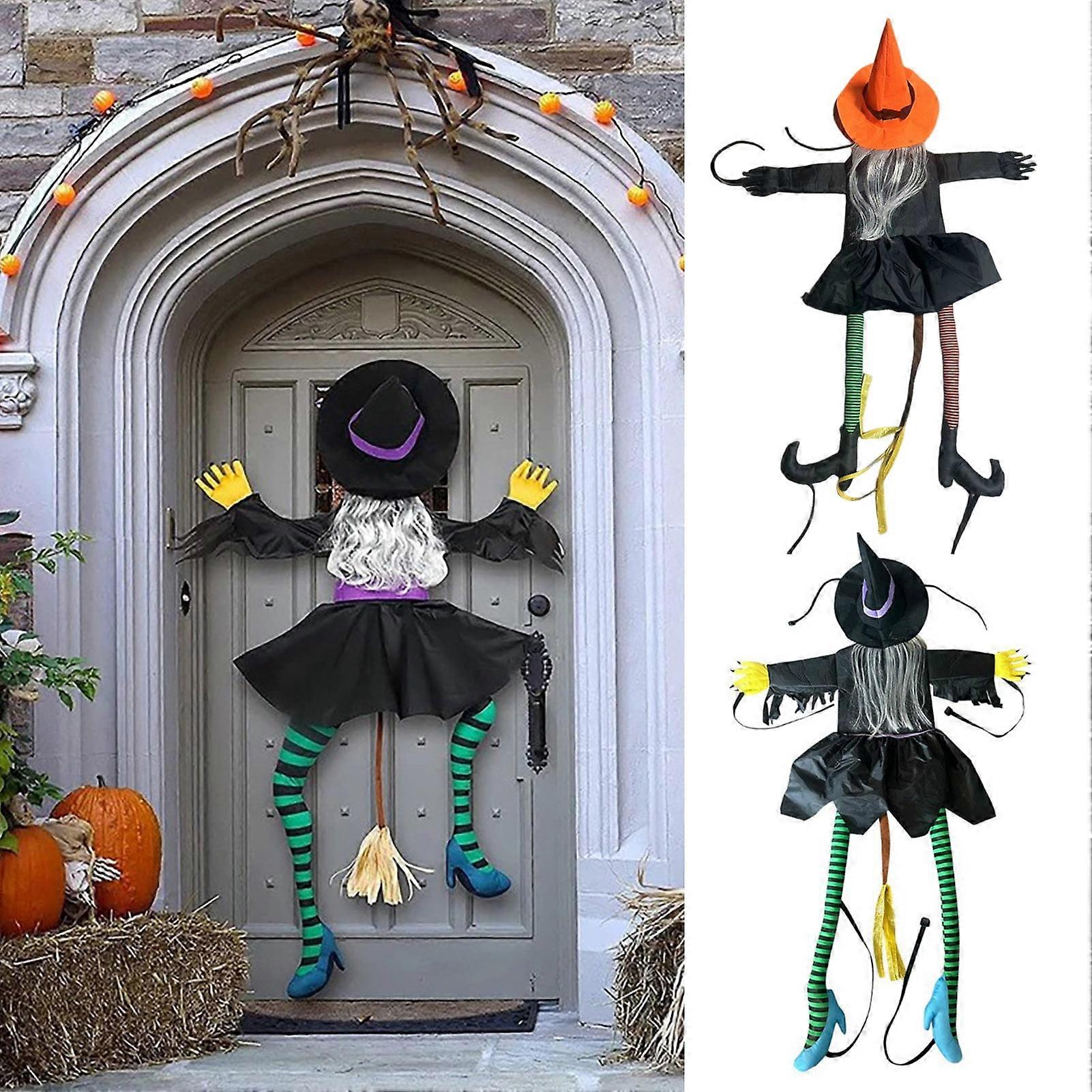 Halloween Witch Statue, Large Flying Witch Crashing Into Tree, Outdoor Decor for Porch, Fence, Garden, Yard - Style M