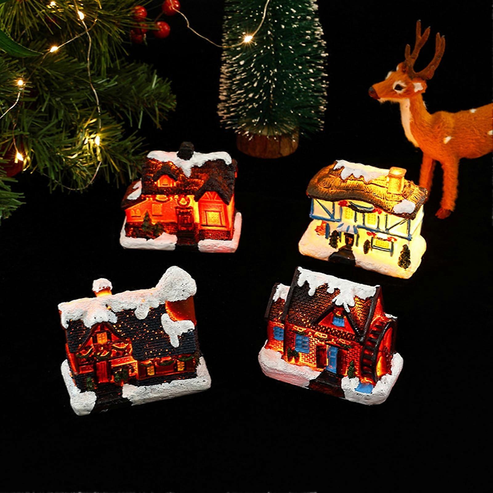 SUSUchens Christmas House Ornament Micro-landscape Resin Glowing Snowhouse Ornament for Festive Home Desk Decoration Style A