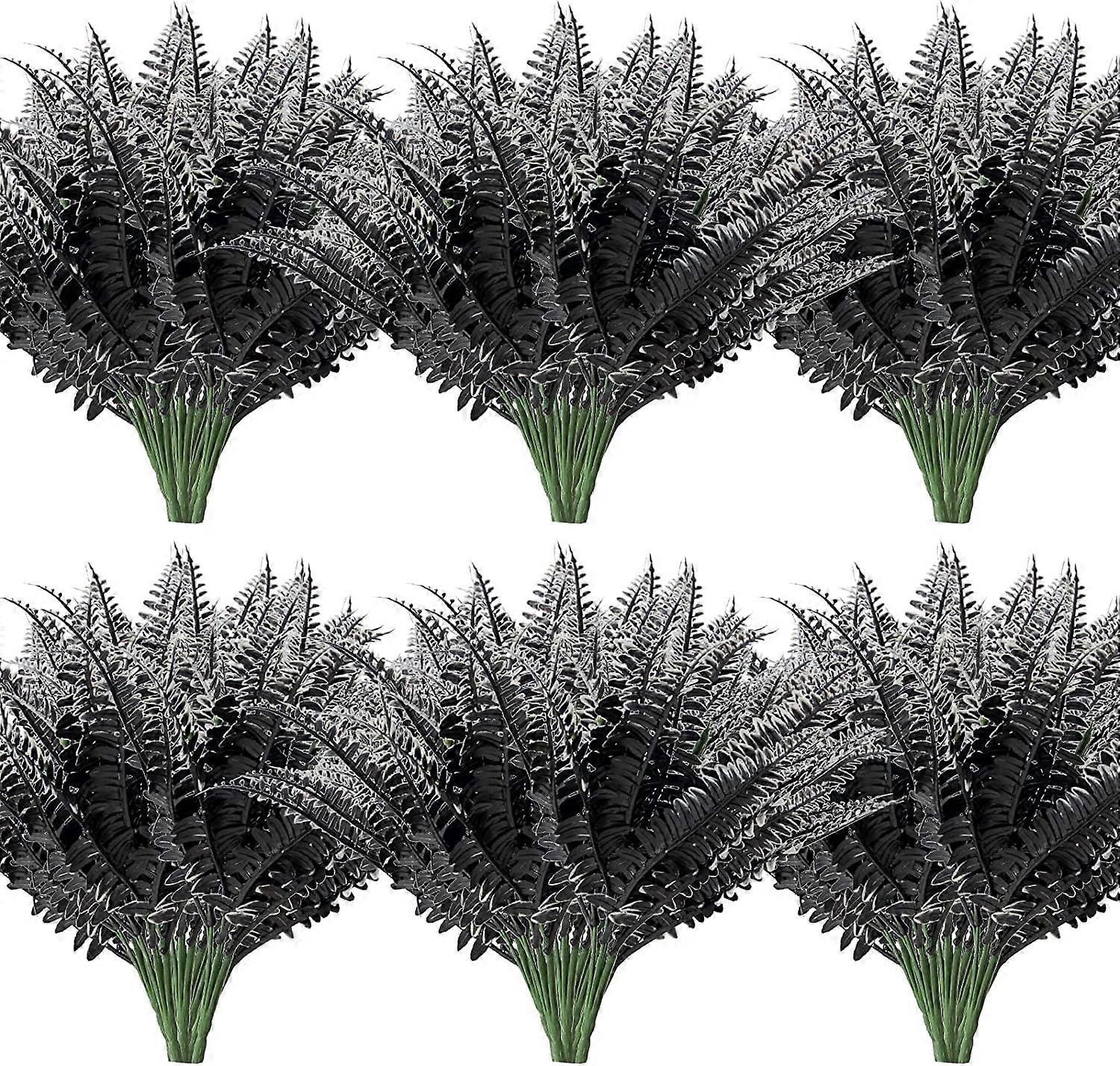 12 Bundles Artificial Fall Plants, Fake Boston Fern Greenery, UV Resistant Outdoor Faux Plants for Garden Porch Window Box (Fall Boston Fern)