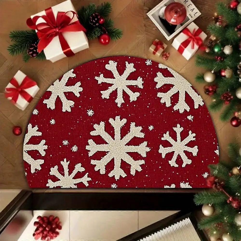 VIKAMA Christmas Half Circle Floor Mat Anti-Slip Fireplace Rug Outdoor Indoor Living Room Bedroom Floor Mat Holiday Decoration