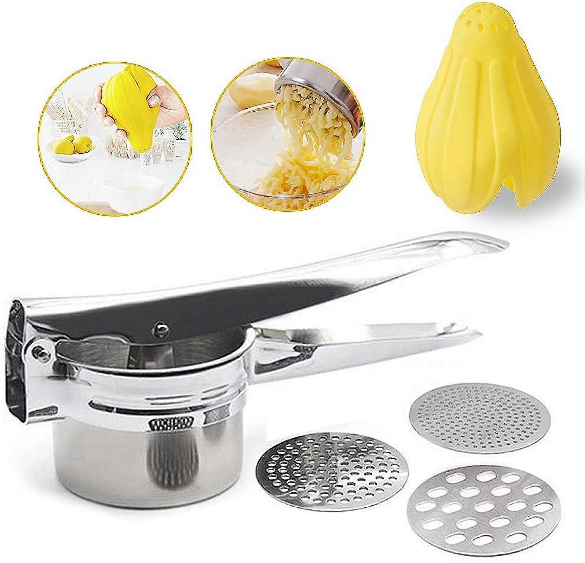 Heavy Duty Stainless Steel Potato Masher and Ricer Kitchen Tool, Press and Mash For Perfect Mashed Potatoes,With 3 Interchangeable Washers