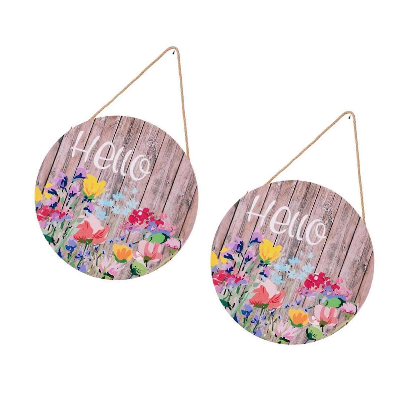 Welcome Sign for Front Door Round Wood Sign with Flower Hello Decorative Hangings for Farmhouses Porch Spring Decorations Multicolor