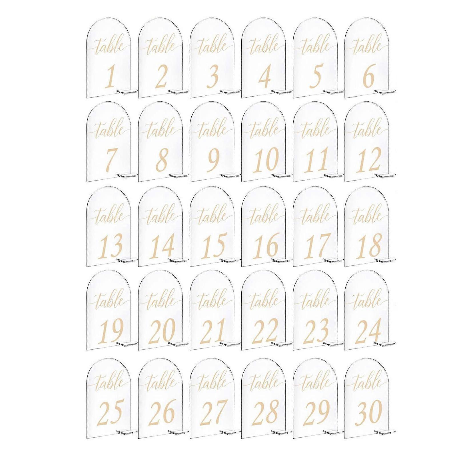 1-30 Acrylic Wedding Table Numbers Card with Stand for Wedding Banquet Event Party Restaurant Printed Clear Number Sign Multicolor
