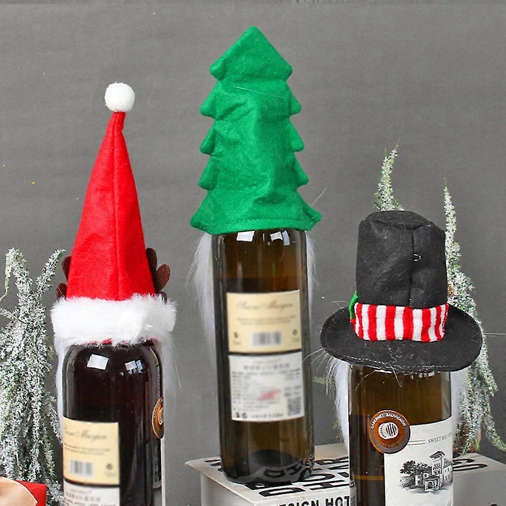 2pcs Christmas Wine Bottle Cover Christmas Tree Topper Hat Christmas Red Wine Bottle Sleeve Winter Merry Christmas Home Party Decor