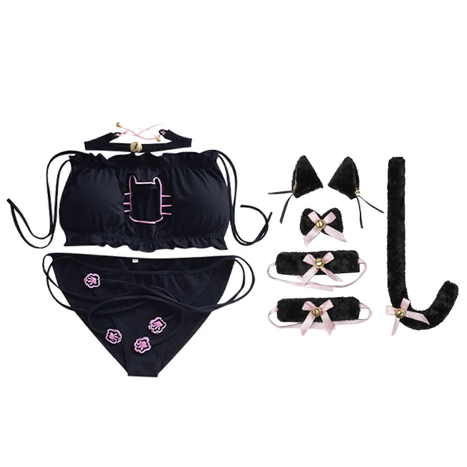 Women's Sexy Cats Cosplay Lingerie Kawaii Anime Cats Costume Bikini Cute Bra and Panty Cats Tail and Ears Bell None XS