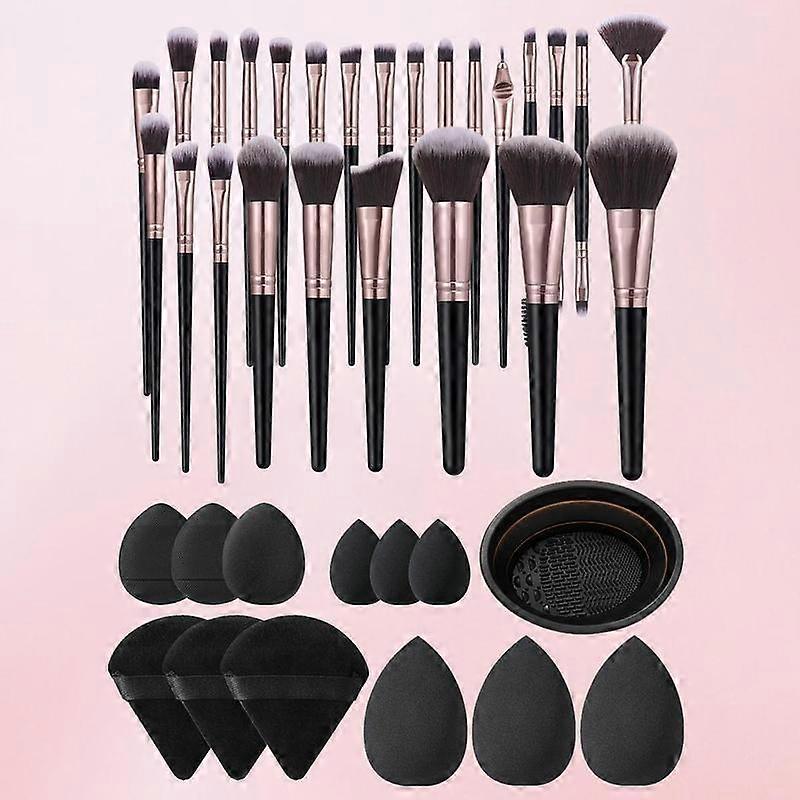 【Comprehensive Collection】: With 38 pieces including 25 specialized makeup brushes, this set covers every makeup application need from foundation to contouring.<br/>【Premium Makeup Sponges】: Includes 3 beauty blenders for flawless foundation application, 3 detail sponges for concealer, and 3 finger puffs for precise touch-ups.<br/>【Versatile Brushes】: Features a range of brushes for powder, blush, contour, highlight, eyeshadow, eyebrow, and nose shading, catering to all makeup routines.<br/>【Finishing Touches】: Comes with 3 makeup puffs for setting and blending powders, ensuring a smooth, seamless finish.<br/>【Easy Cleaning】: Includes a washing bowl for effortless cleaning of brushes and sponges, maintaining their quality and hygiene.<br/> <br/> <br/> <br/> <br/> <br/> <br/> <br/> <br/> <br/> <br/> <br/> <br/> <br/> <br/> <br/> <br/> <br/> <br/>