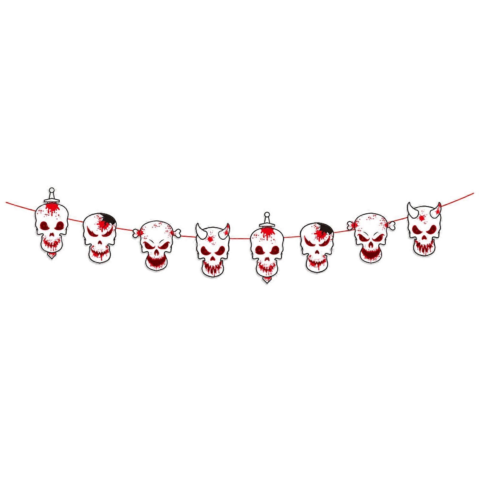Description: Our banners are designed with pumpkins, bloody-cutters, bloody-eyes, skulls and various horror Halloween elements, which enriches the scary Halloween atmosphere, and create your own special and unique Halloween scene. By the advantages of wear-resistance, tear-resistance and fade-resistance, these party banners have a longer lifespan. It is ideal for kitchen, living room, bedroom, garden or porch, creating a scary atmosphere to celebrate Halloween. It is constructed of paper material. There are 6 different sizes for you to choose from. This product is perfectly suitable for home, household, dorm, haunted house, etc. Item Name: Halloween Decoration Material: Paper Features: Eye-catching, DIY, Attractive, Eco-friendly Size Details: Style A: 21cm x 13cm/8.27" x 5.12" (Approx.) Style B: 24cm x 16cm/9.45" x 6.3" (Approx.) Style C: 20cm x 17cm/7.87" x 6.69" (Approx.) Style D: 30cm x 8cm/11.81" x 3.15" (Approx.) Style E: 21cm x 12cm/8.27" x 4.72" (Approx.) Style F: 19cm x 18cm/7.48" x 7.09" (Approx.) Rope Length: 300cm/118.11" (Approx.) Notes: Due to the light and screen setting difference, the item's color may be slightly different from the pictures. Please allow slight dimension difference due to different manual measurement. Package Includes: 8 x Halloween Decorations 1 x Rope Our banners are designed with pumpkins, bloody-cutters, bloody-eyes, skulls and various horror Halloween elements, which enriches the scary Halloween atmosphere, and create your own special and unique Halloween scene. By the advantages of wear-resistance, tear-resistance and fade-resistance, these party banners have a longer lifespan. It is ideal for kitchen, living room, bedroom, garden or porch, creating a scary atmosphere to celebrate Halloween. It is constructed of paper material. There are 6 different sizes for you to choose from. This product is perfectly suitable for home, household, dorm, haunted house, etc.