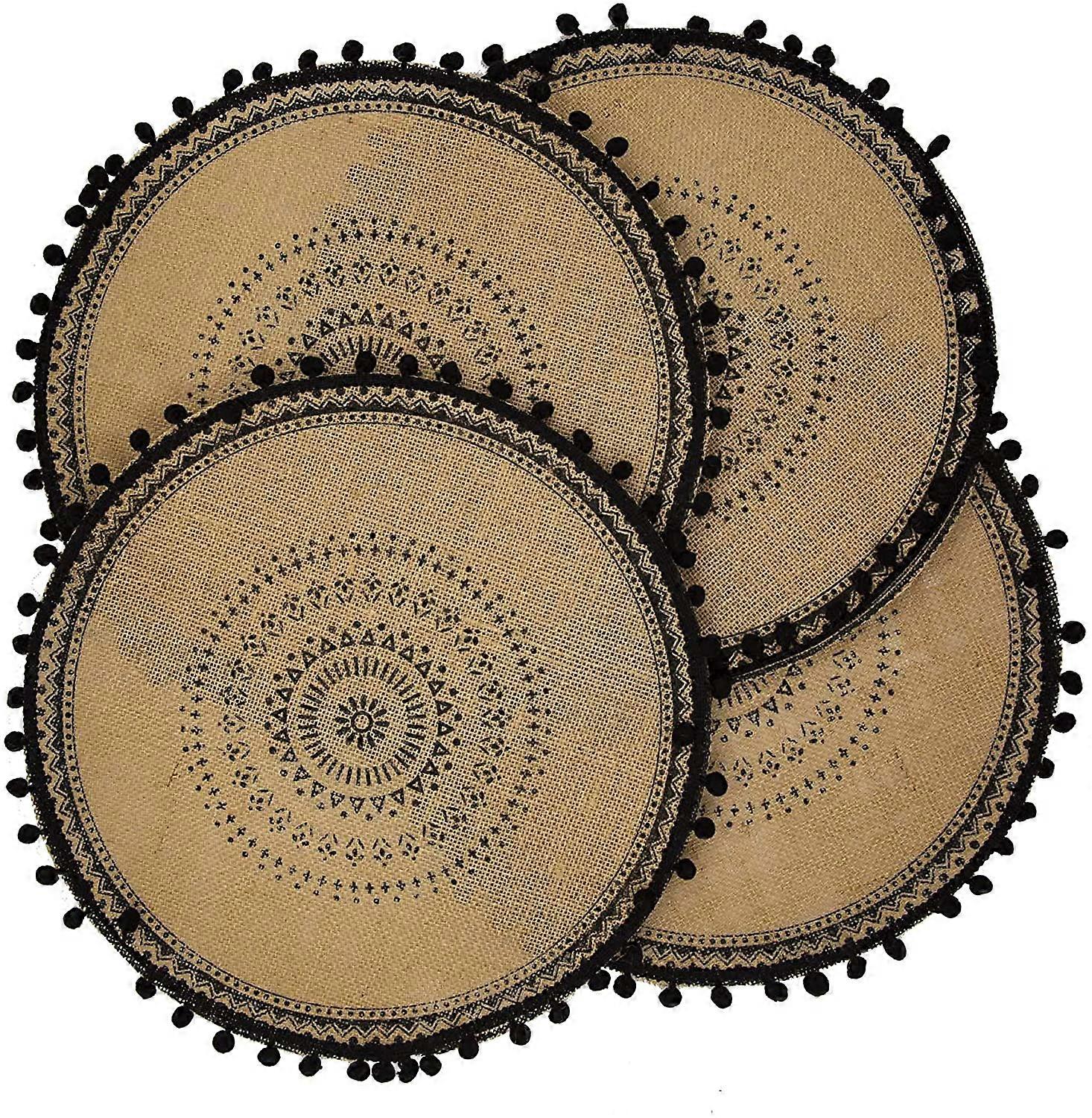 Round Placemats Set of 4, Modern Braided Beige Boho Dinner Mats compatible with Winter & Fall Decor, Kitchen Table Plate Mats (Black Ball)