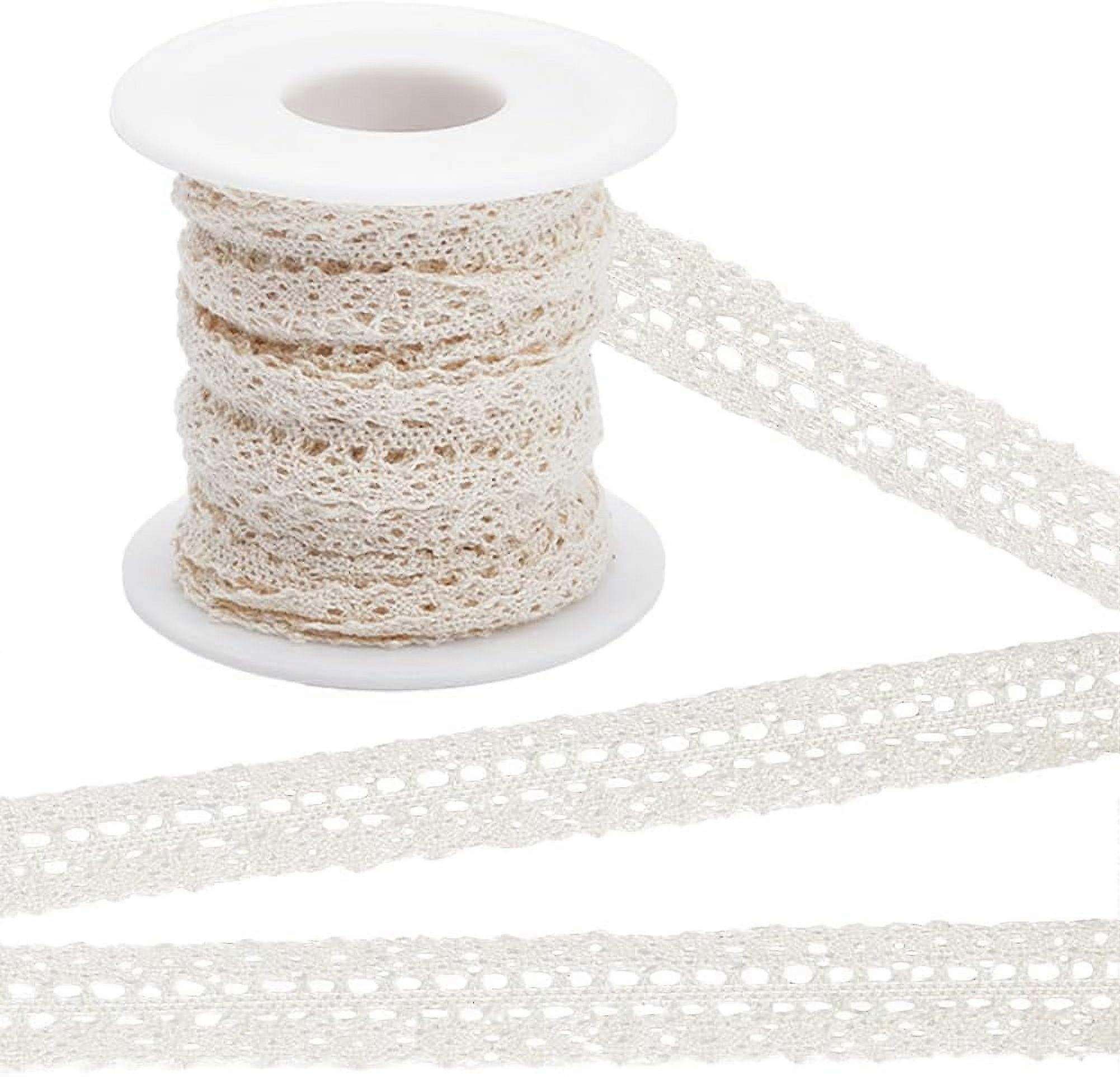 5/8" Elastic Lace Ribbon 7.5 Yards, Polyester Crochet Trim with Floral Edge, Vintage White Embroidery for DIY Socks & Crafts