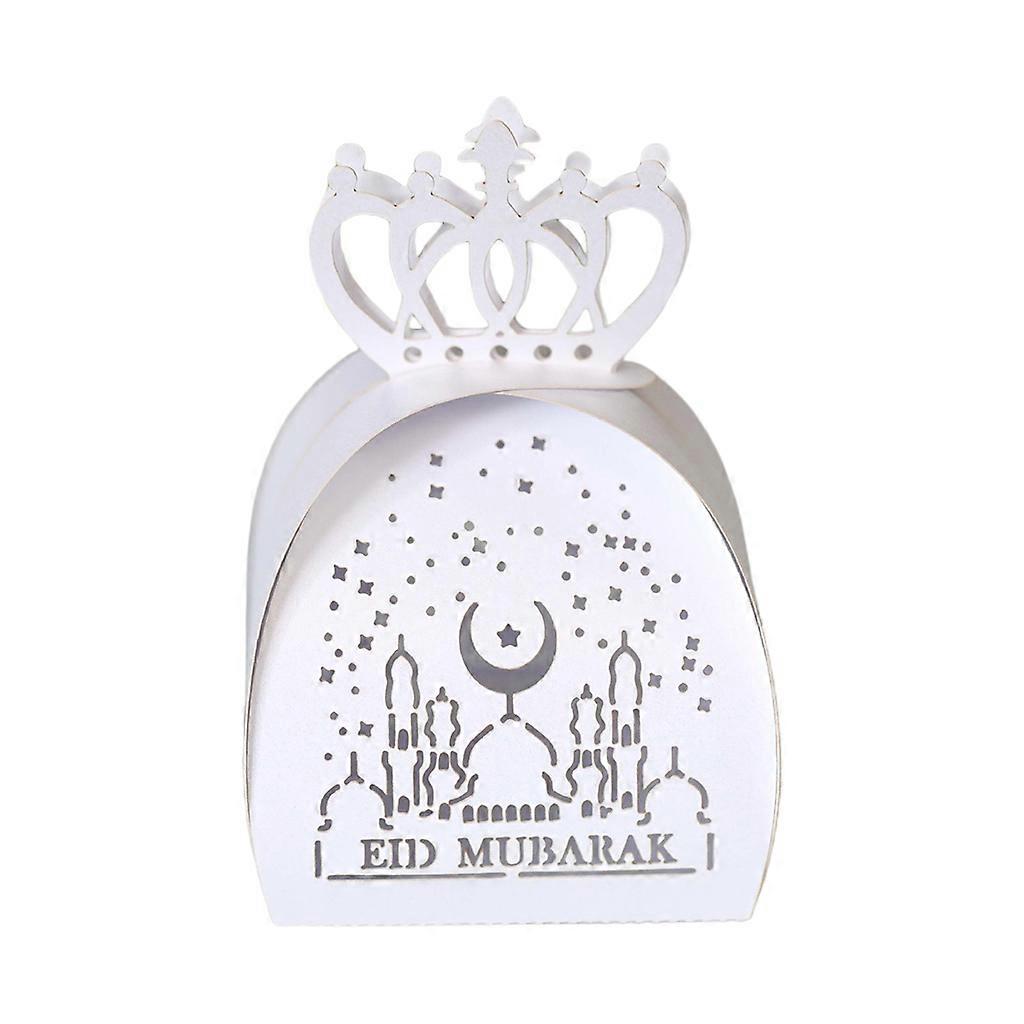 100pcs Eid Mubarak Candy Box Favor Ramadan Kareem Gift Boxes Islamic Muslim Festival Happy Al-Fitr Party Supplies White