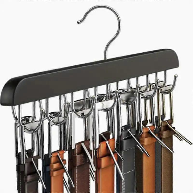 Wooden Belt Hanger, 1 Count Space Saving Belt Hanger with 14 Hooks, Multifunctional Clothes Hanger for Tie, Belt, Scarf, Home Organizer, Han