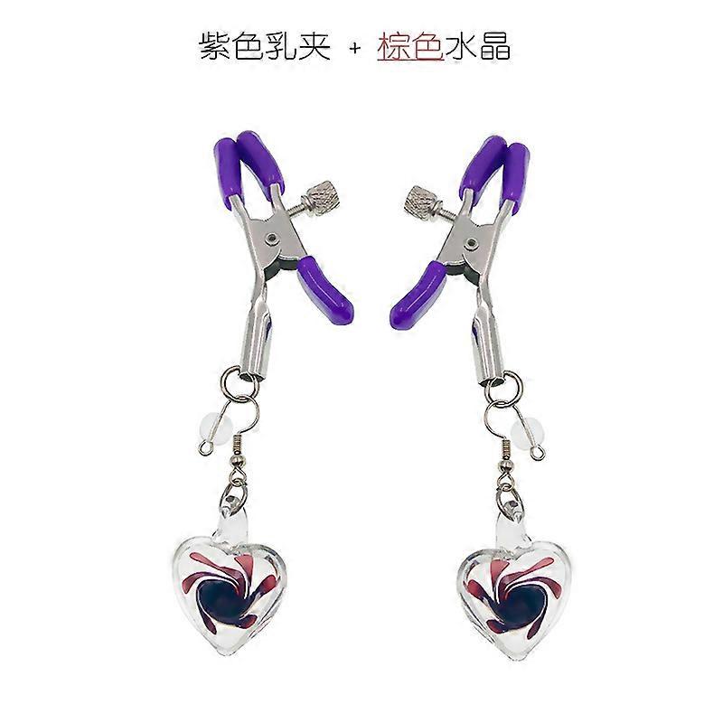 (1 pair) Purple nipple clamps + brown crystal nipple clamps, a seductive and stimulating tool for women and slaves, produced in one piece.
