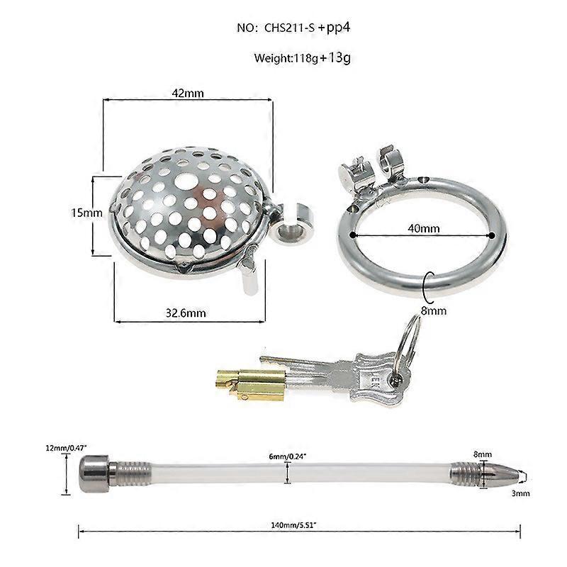 The set includes a 40mm retaining ring, a long, thick tube, a hollowed-out small pot lid, and a CB lock for men to wear outdoors as a sex