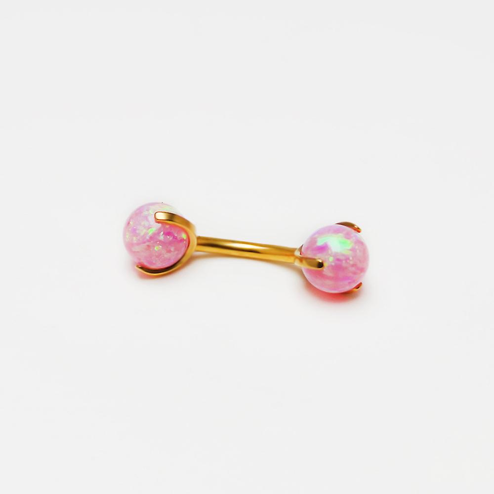 Gold glitter 5mm x 1.2*6mm F136 implant-grade titanium alloy inner spiral eyebrow stud, double-ball opal lip stud, curved rod eyebrow