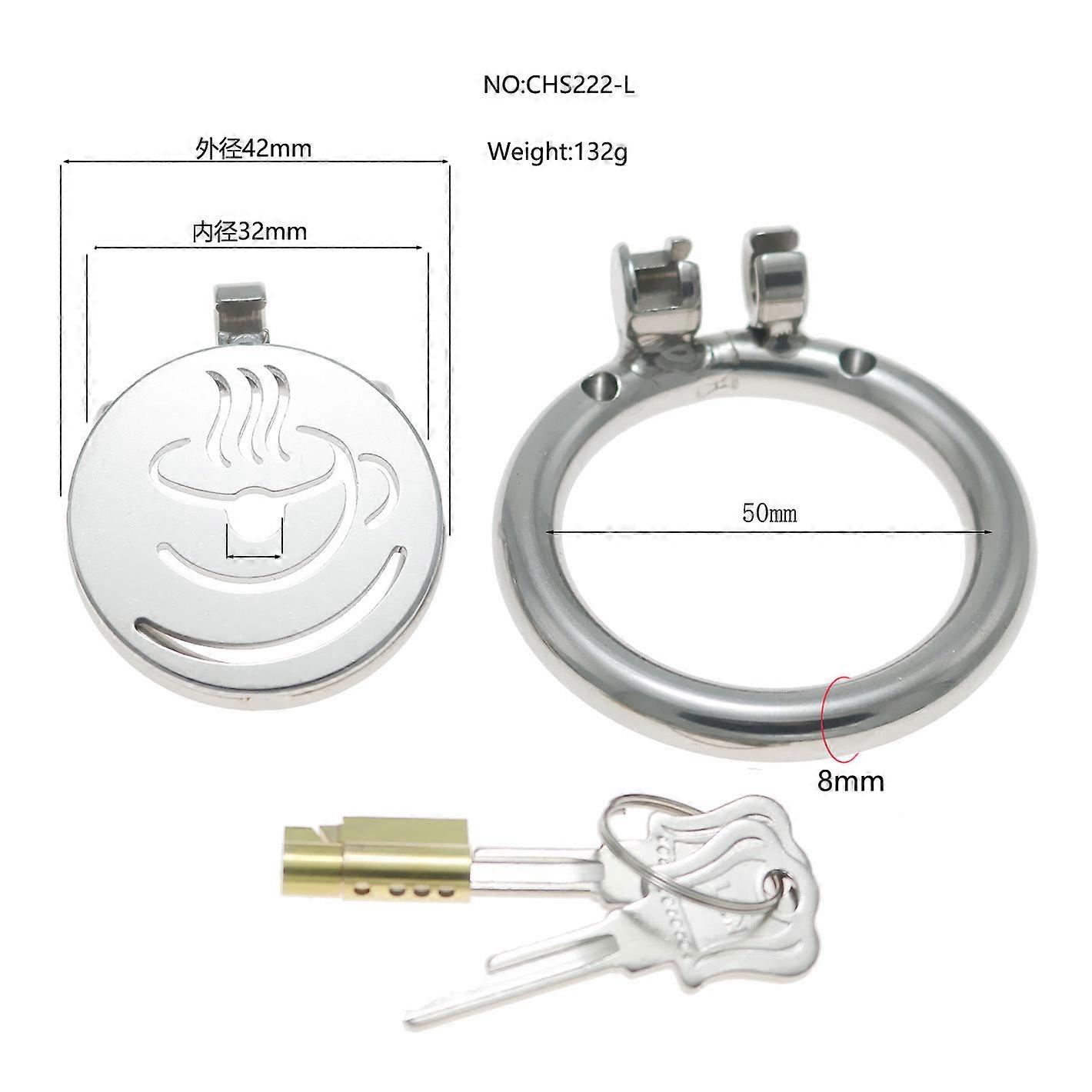 The set includes a 50mm retaining ring, a metal stainless steel flat chastity lock, a short style, and is designed for men to wear outdoors