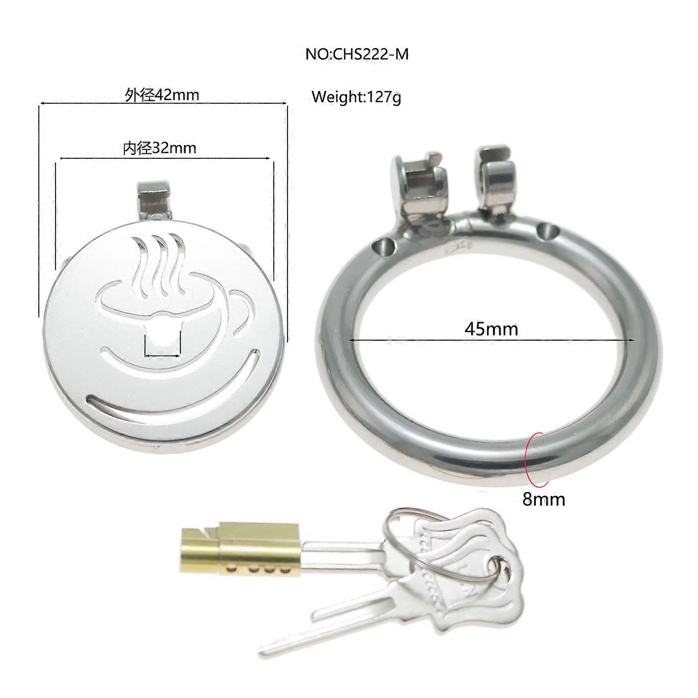 The set includes a 45mm retaining ring, a metal stainless steel flat chastity lock, a short style, and is designed for men to wear outdoors