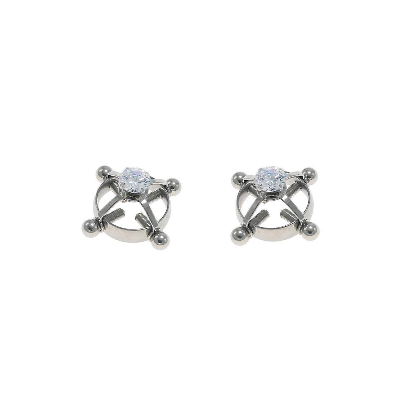 Silver ring screw nipple clamps with rhinestones, one pair of nipple clamp accessories, ring screw clips, sex toys, couples' flirting,