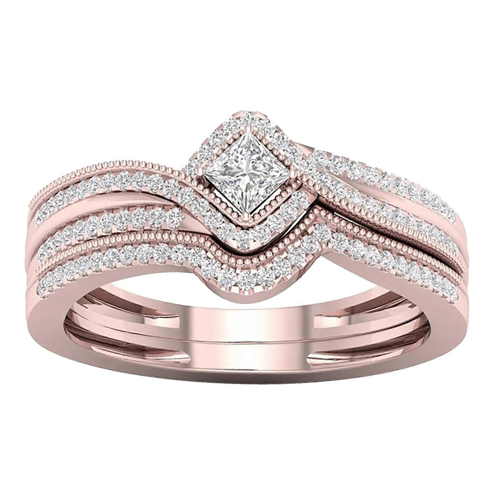 Kayannuo Christmas Clearance Rhinestone Rings Set For Women 2PCS Stackable Ring Bands Engagement Wedding