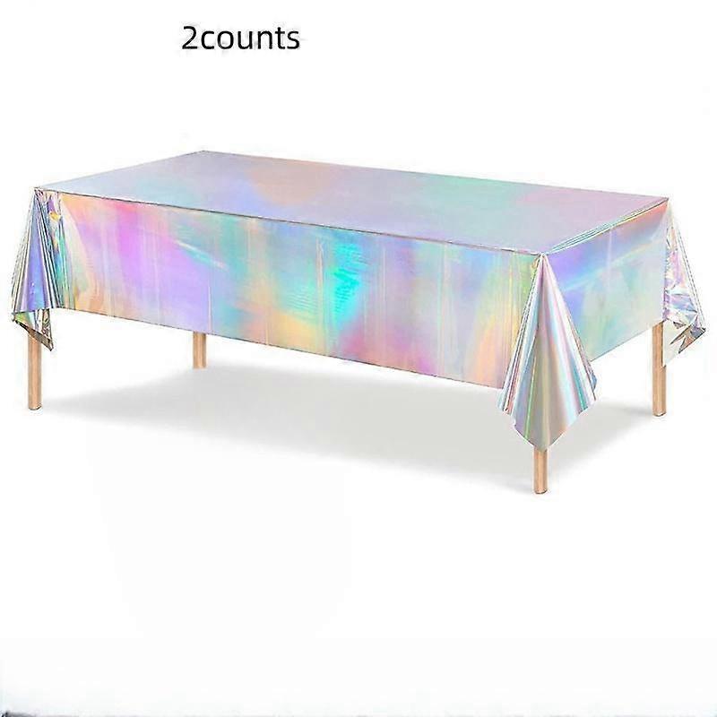 Rainbow Color Plastic Tablecloth Set, Shiny Disposable Laser Foil Table Cover for Birthday Wedding Party Picnic Christmas Decoration