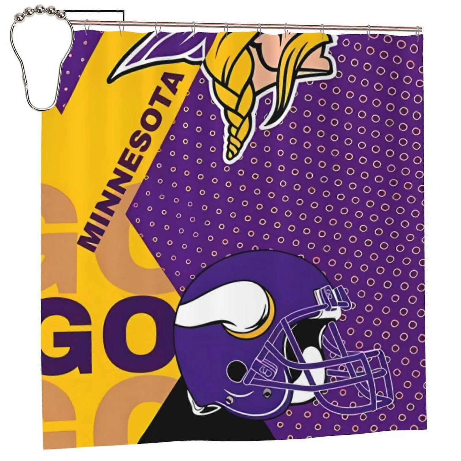 Vikings Waterproof Quick-Dry Shower Curtain 72x72in with Hooks, Football Decor Bath Curtain Set