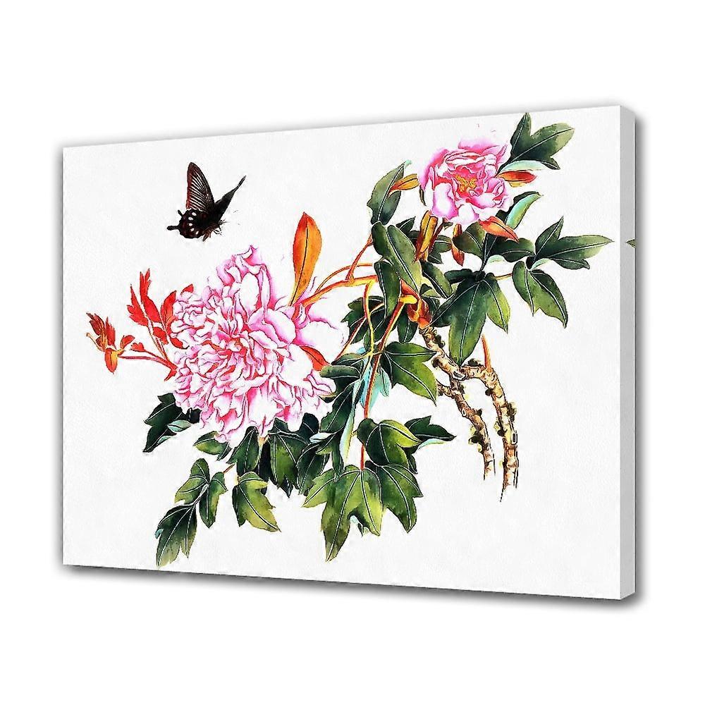 Butterflies Dancing On Peony Flowers Poster Decorative Painting Canvas Wall Art Living Room Posters Bedroom Painting,Frame-style,16x24inch(40x60cm)