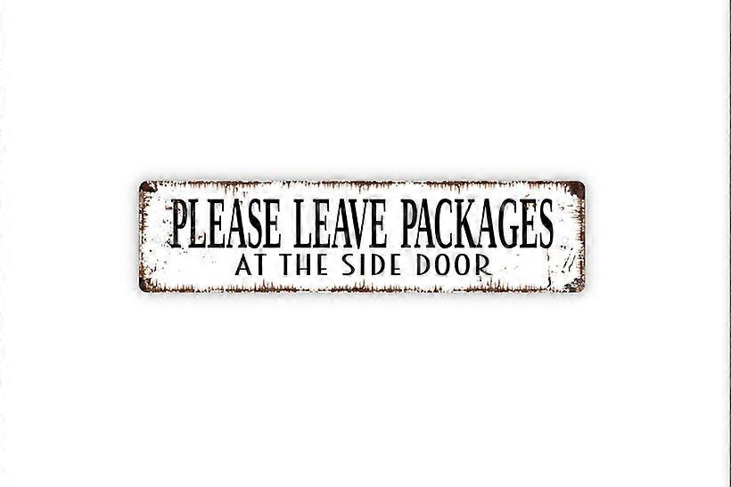 Please Leave Packages At Side Door Sign Metal Rustic Street Sign or Door Name Plate Plaque Size: 4 x 16 Inch