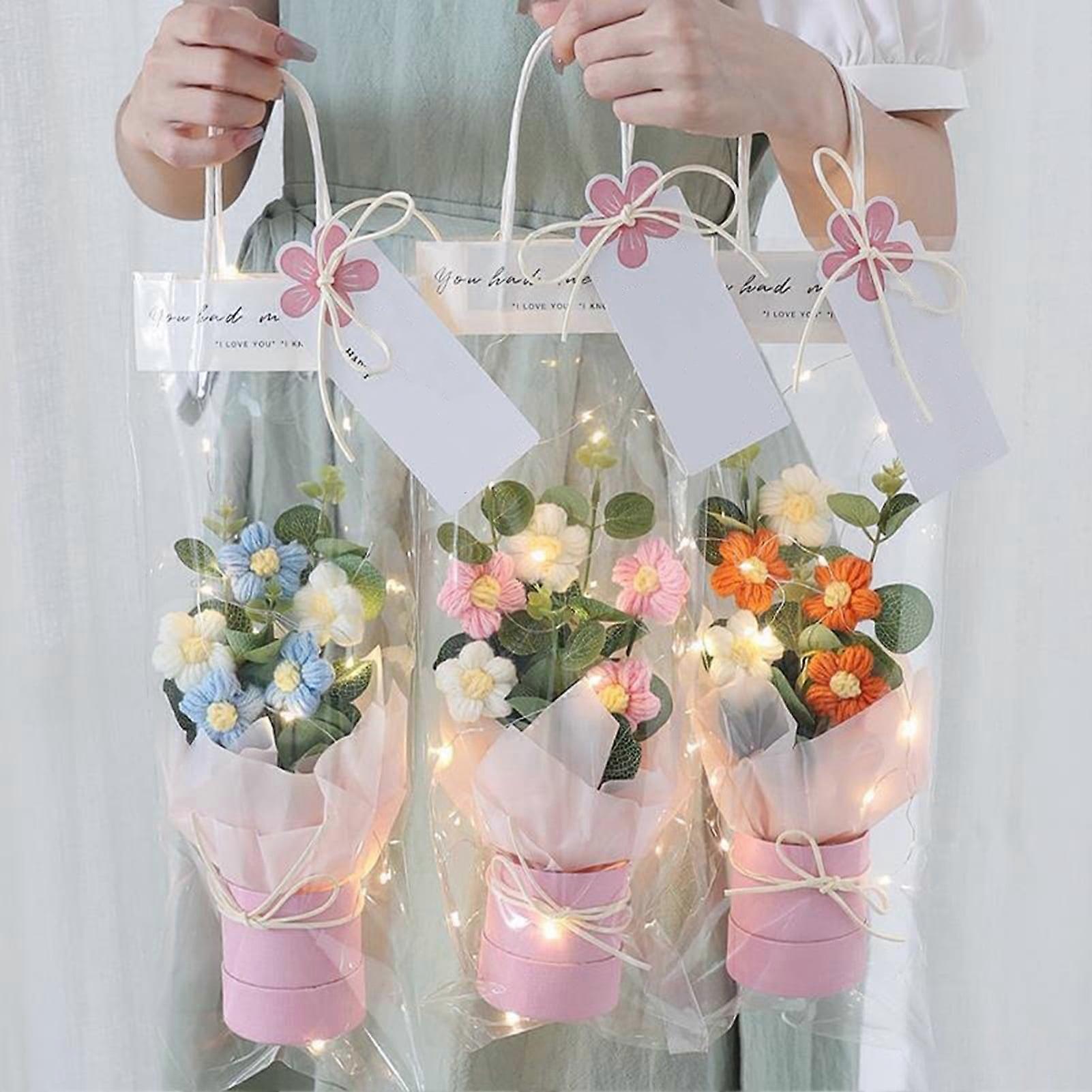 SUSUchens Crochet Bouquet with LED Light Handcrafted Knitted Flower Fake Bouquet Vivid Appearance False Bouquet Valentine Day Gift Purple