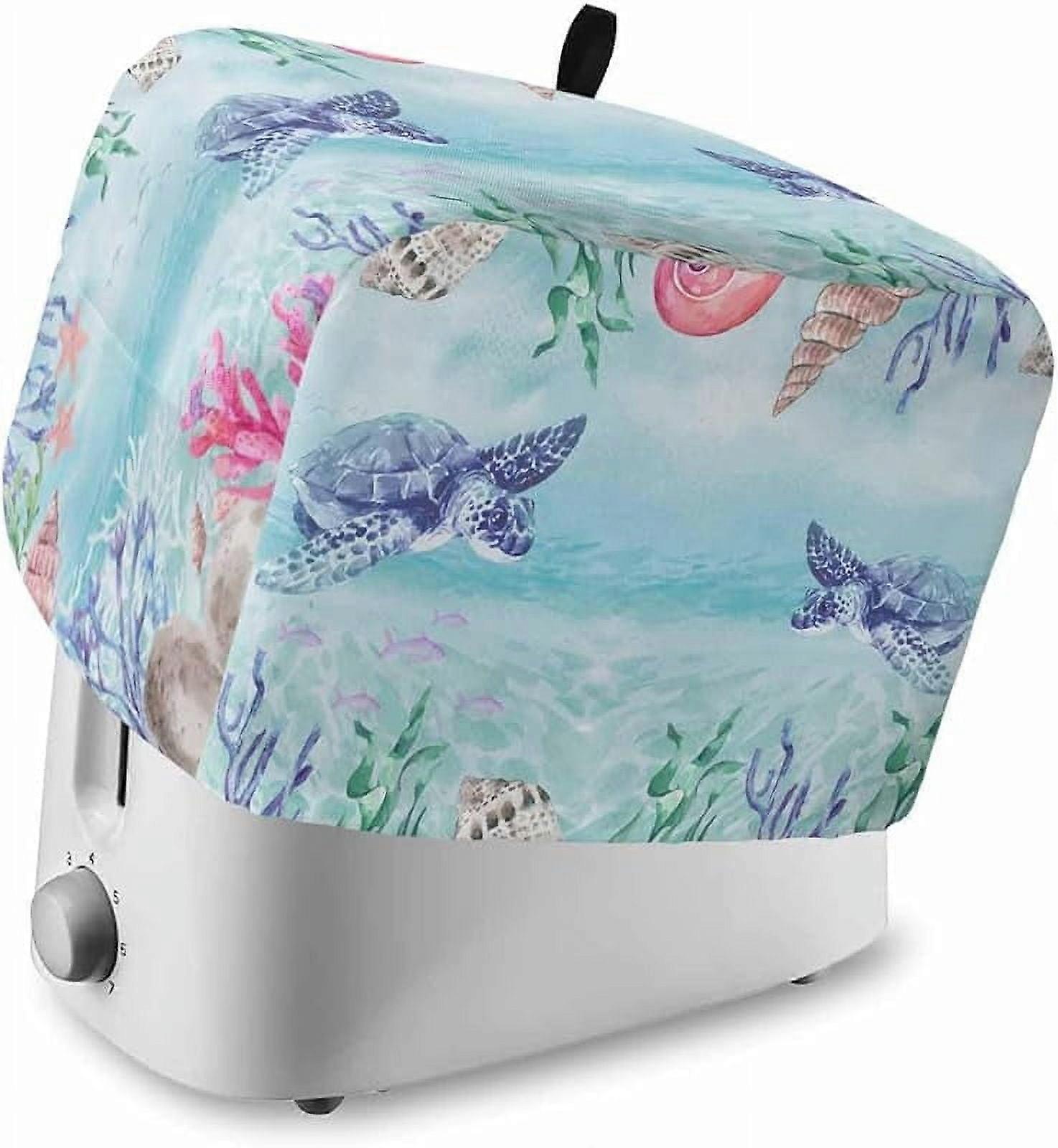 Ocean Sea Turtle Toaster Cover 2 Slice, Watercolor Jellyfish Starfish Design, Dust-Proof with Pockets, 12x7.5x8in