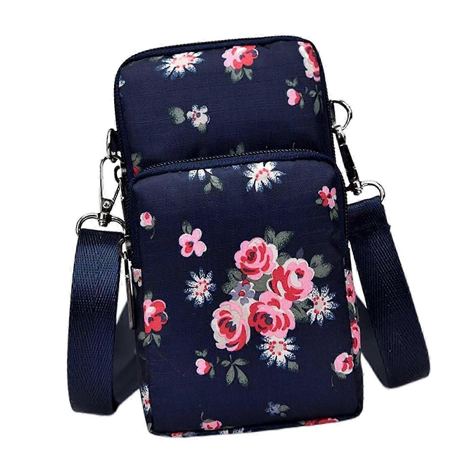 Small Mobile Phone Bag Lightweight Adjustable Strap Women Ladies for Travel Blue Rose