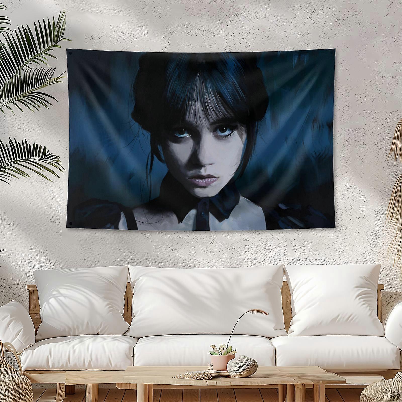Adams Family Wednesday Tapestry 16x24IN, Funny Singer Art Wall Hanging for Dorm, Bedroom, Living Room Decor, compatible with wall hooks