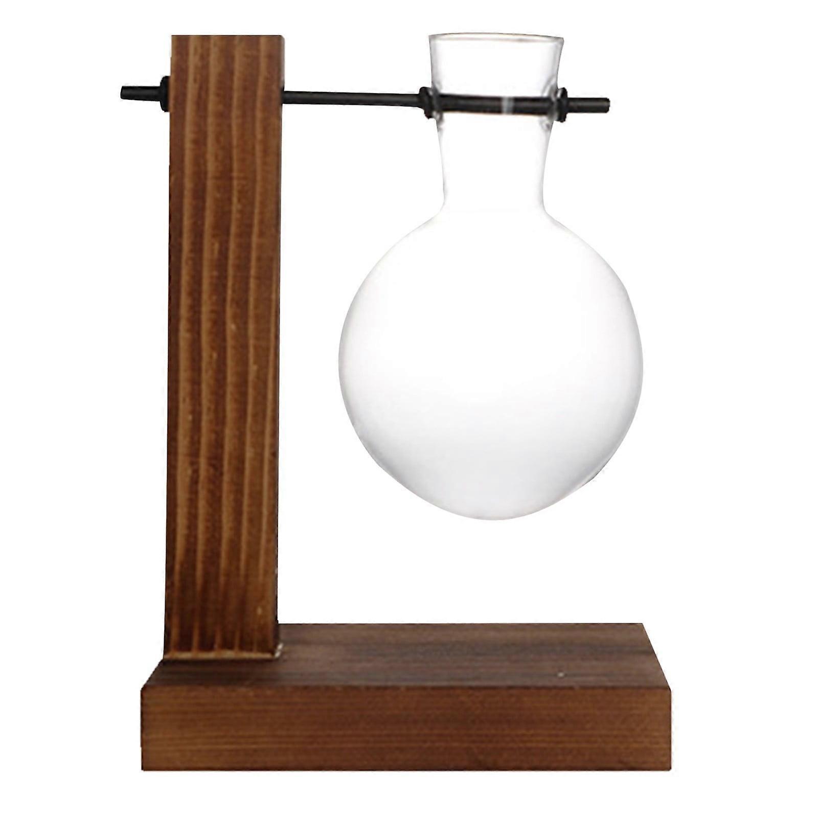 Propagation Station Glass Terrarium Planter with Retro Wooden Stand, 1X Vase & Stand Set for Indoor Garden Decor