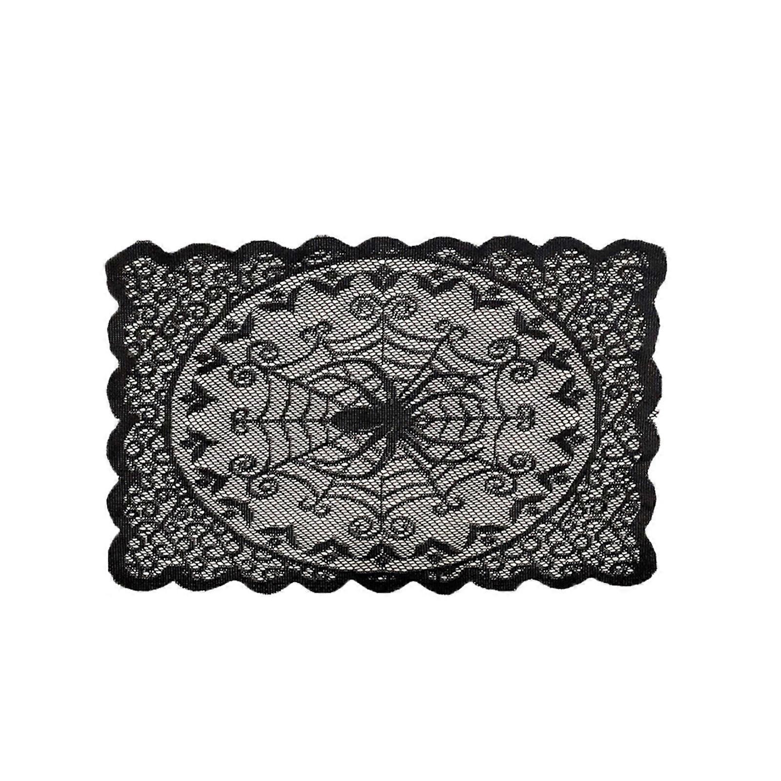 Luckky Halloween Placemats Spider Web Table Mat Black Lace Placemat Desk Pad for Party Kitchen Dining Table Decoration (A)