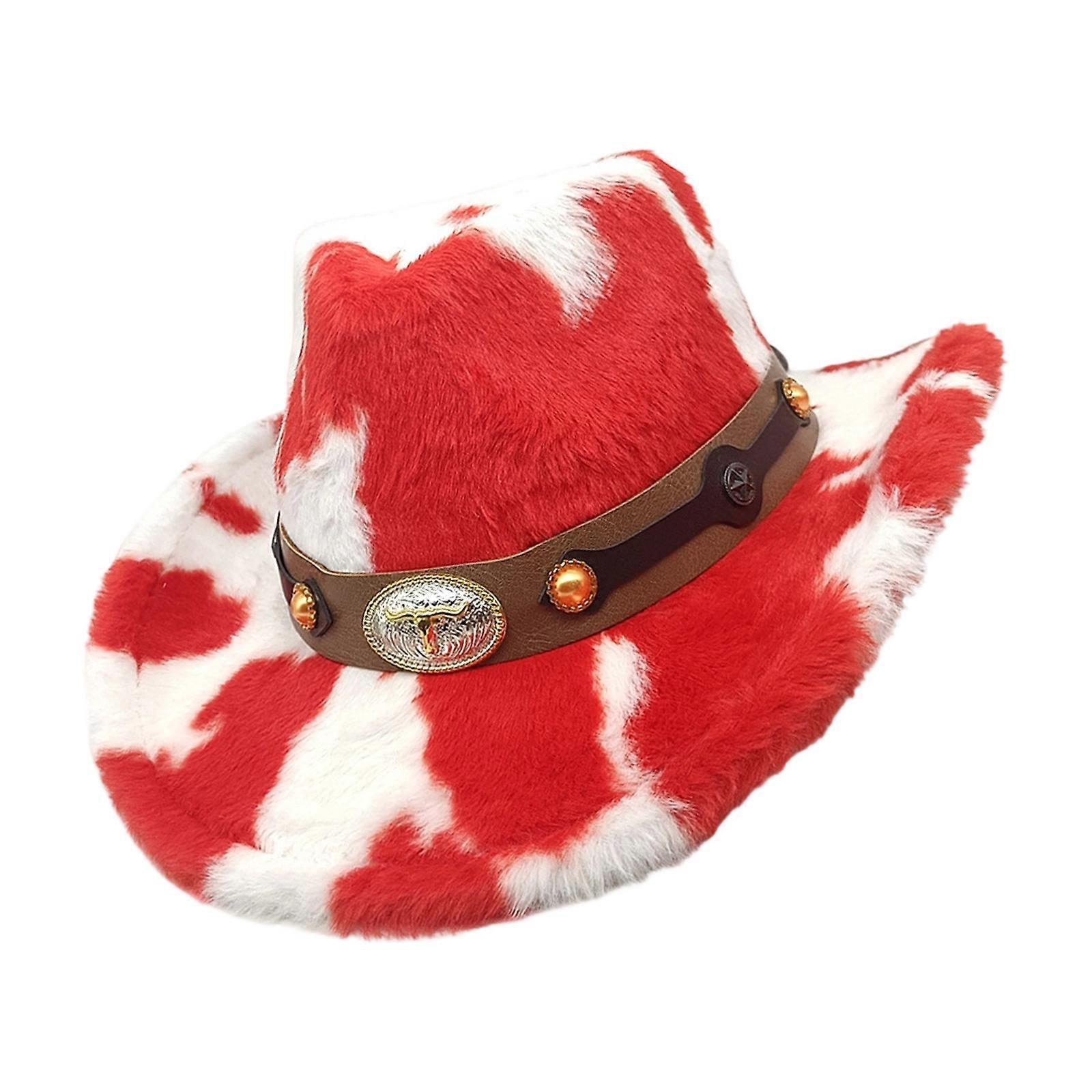 Soft Plush Western Hat Warmth Cowboy Hats For Adult Women Men Cosplay Event and Halloween Party Dressingup Headpiece Red M