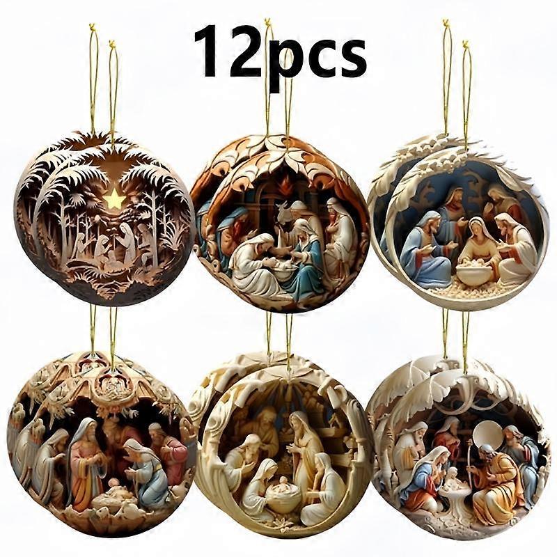 Nativity Scene Hanging Ornament, 12pcs/set Nativity Scene Hanging Decoration, Holiday Decoration for Home Party Festival