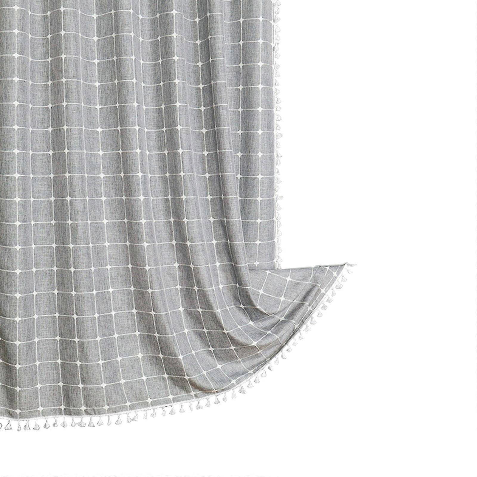 Bohemian Farmside Shower Curtain, Linen Heavy Duty Striped Fabric Set with Tassel, Water Repellent, Compatible with Standard Showers