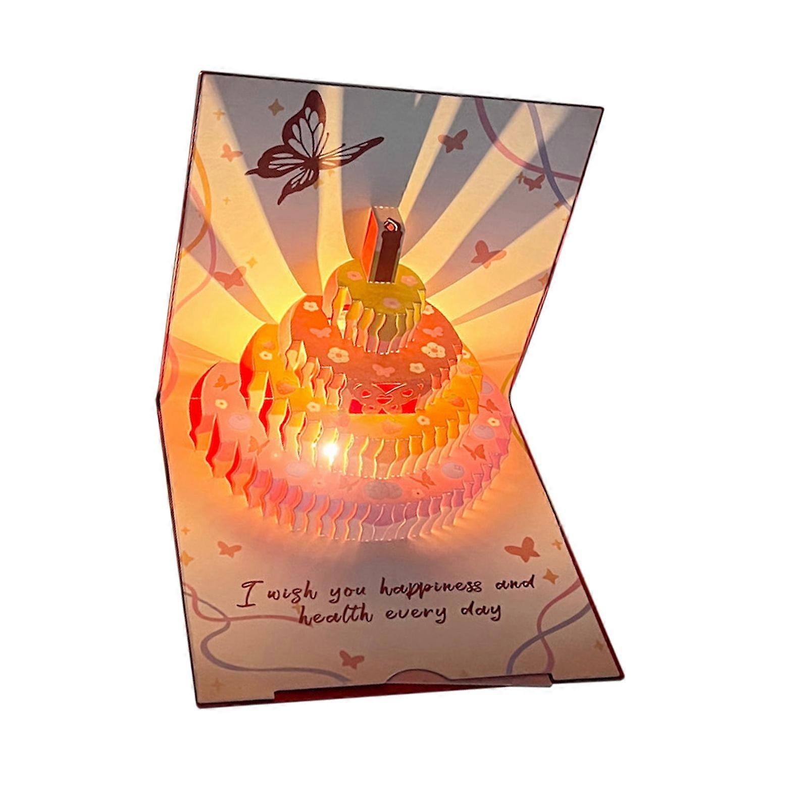 Creative 3D Musical and Light up Birthday Card with Popping Up Cake and Butterfly Pattern for Women Kids Mom Grandma Multicolor