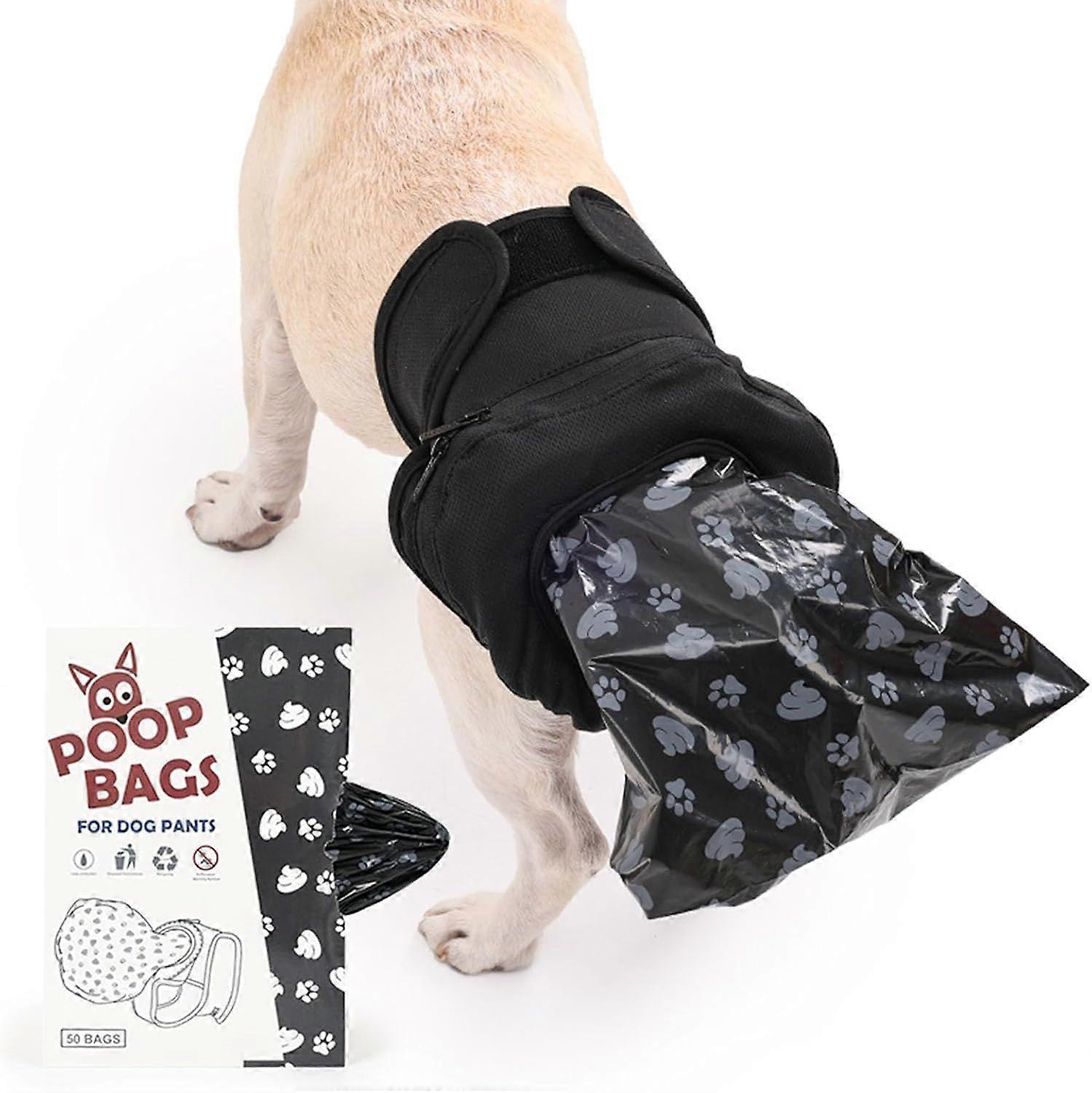Dog Poop Pants with 50pcs Dog Poop Bags, Adjustable Reusable Dogs Sanitary Pants Pet Physiological Underwear Diaper Poops Collection Trousers for Inco